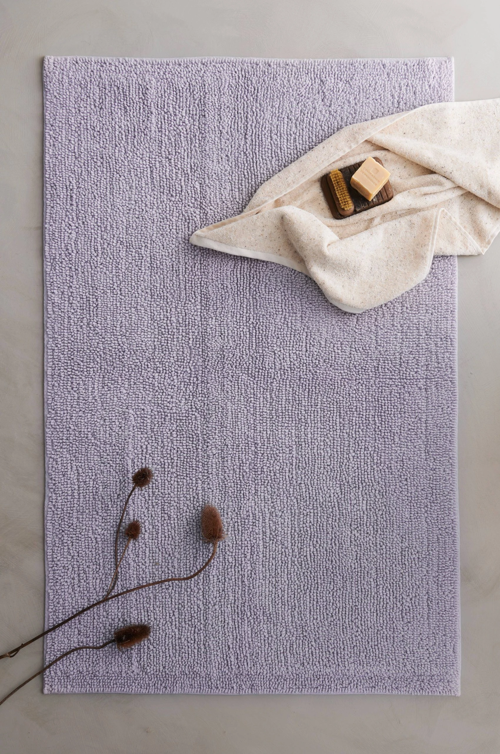 Badrumsmatta i skön bomullskvalitet med korta öglor (ej klippt).
