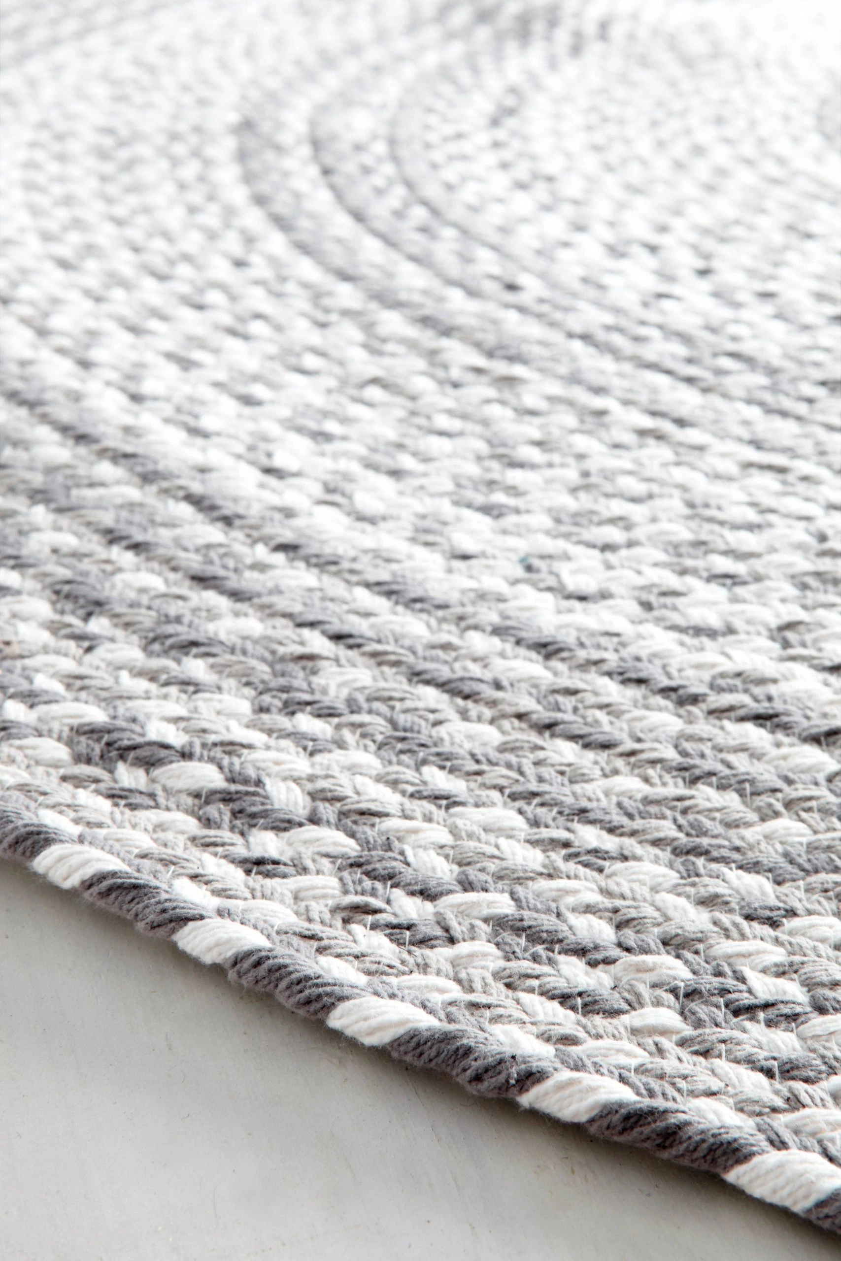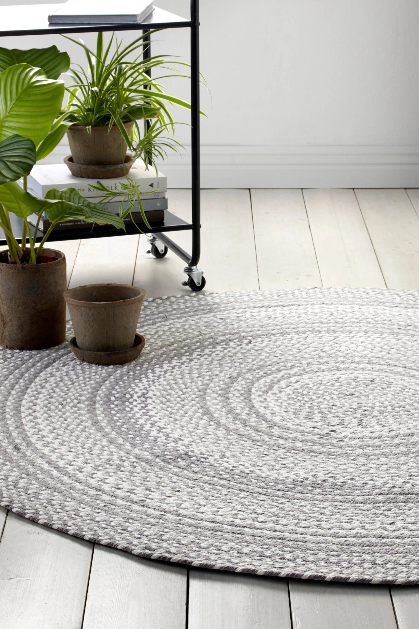 Rund matta av bomull i härliga färger. Flätad och handsydd. Diameter 120 cm.