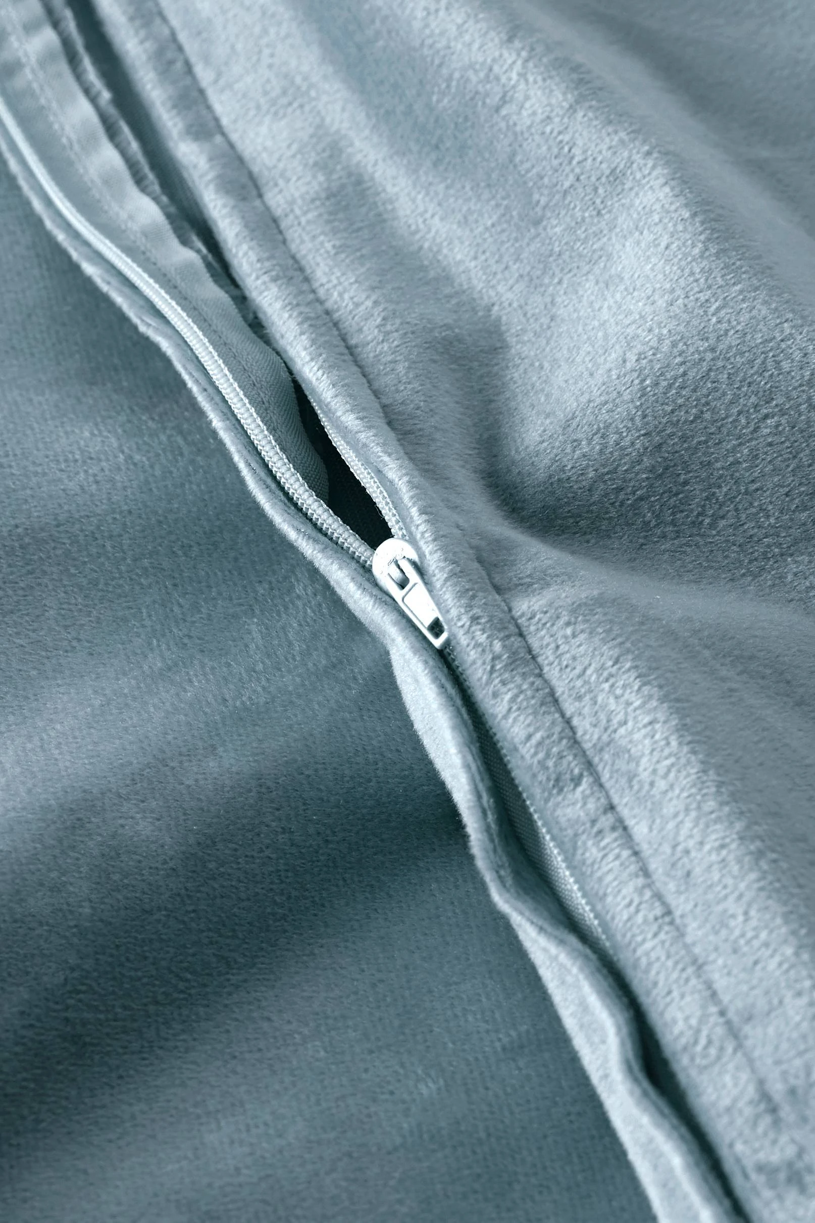 Kuddfodral av sammet med fin lyster. Av återvunnen polyester. Dragkedja i botten.