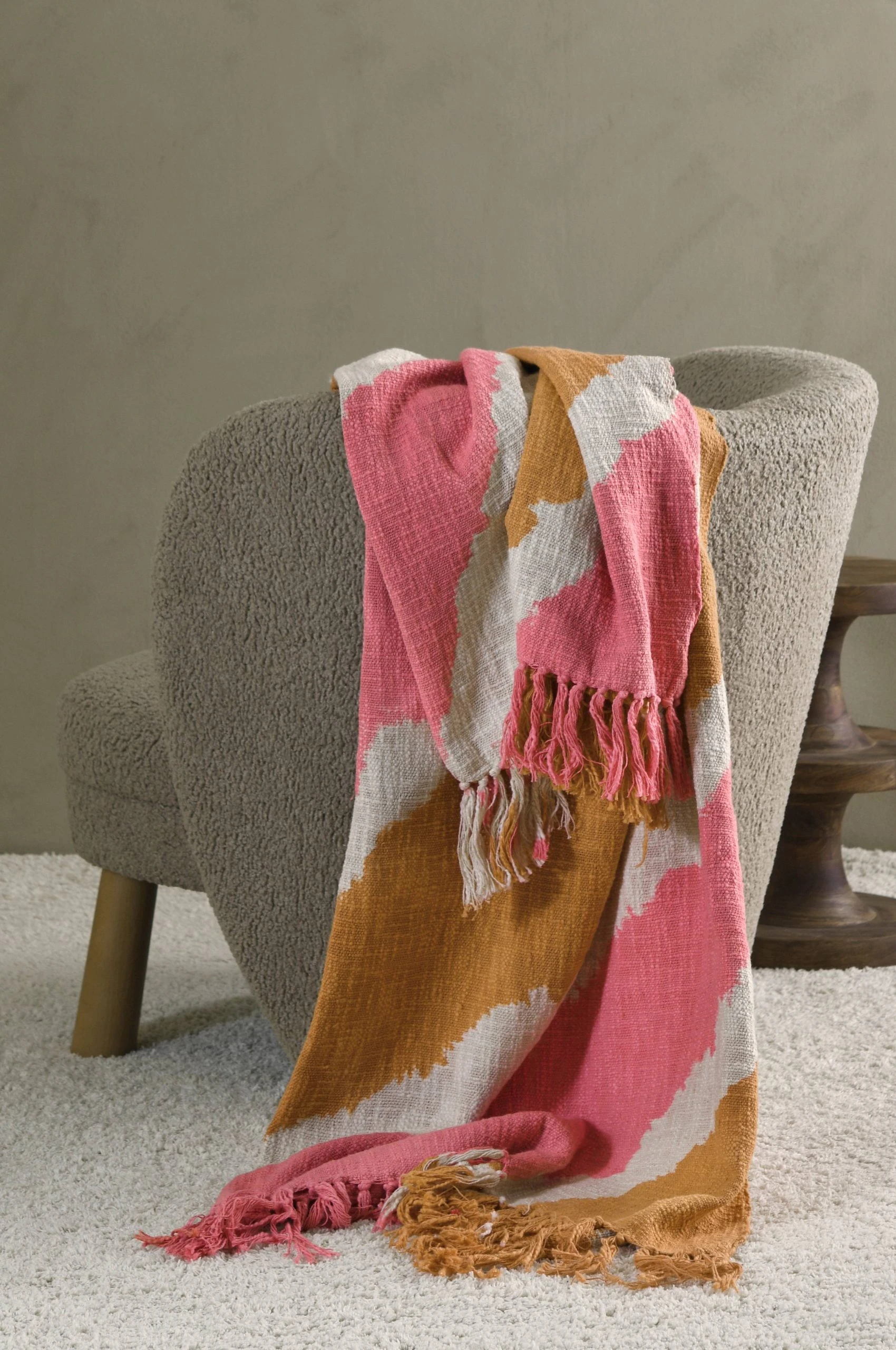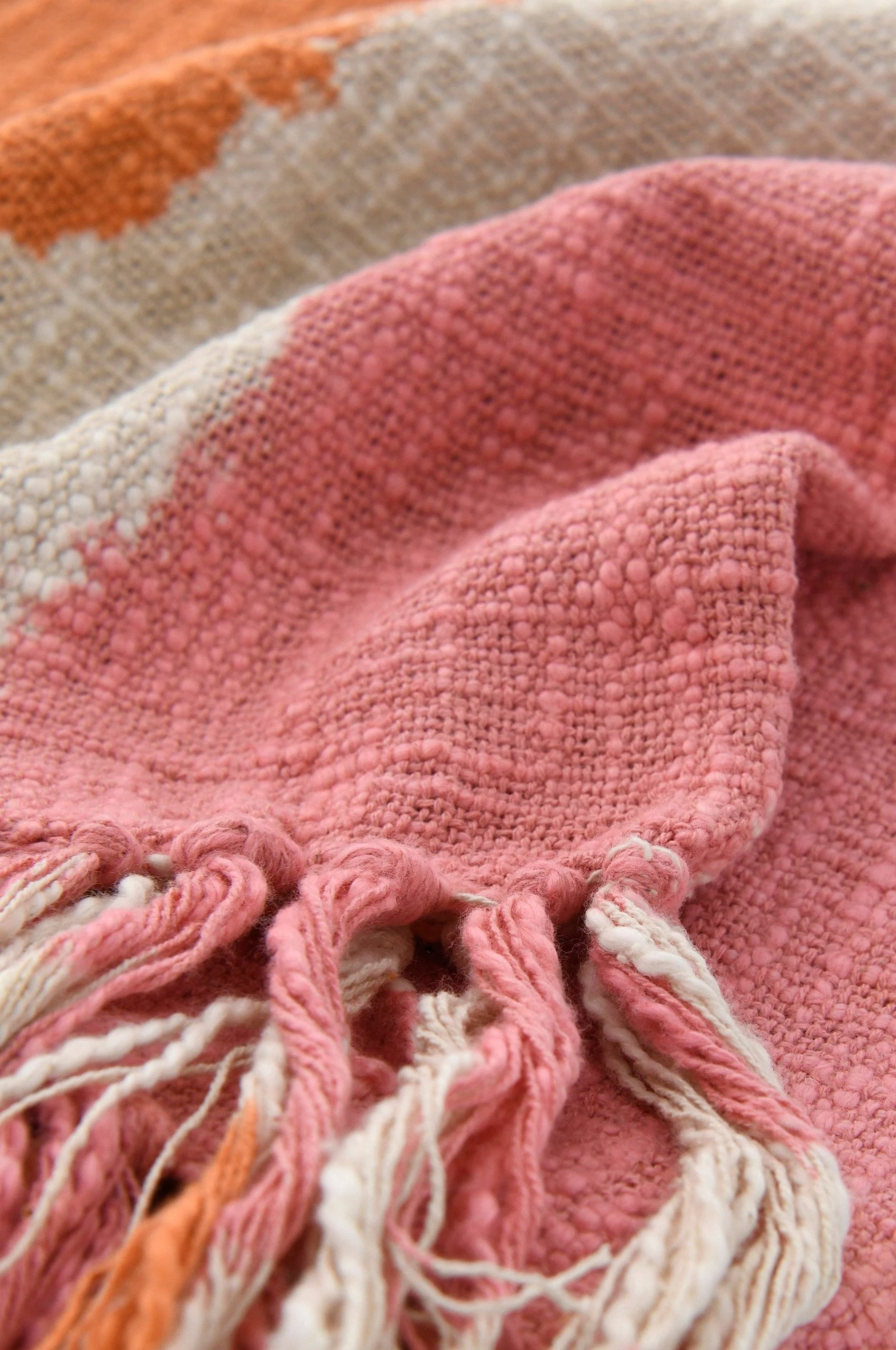Pläd i bomull med tie-dye mönster. Fransar på kortsidorna. Stl 130×170 cm + 8 cm frans.