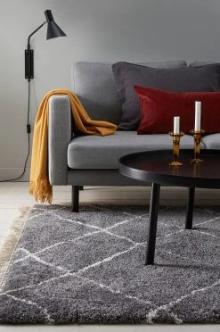 Ryamatta i snygg ull-look med tät och tjock lugg. Lugghöjd ca 3 cm. Fransar med dekorativa knutar. Två storlekar: 160×230 och 200×290 cm.