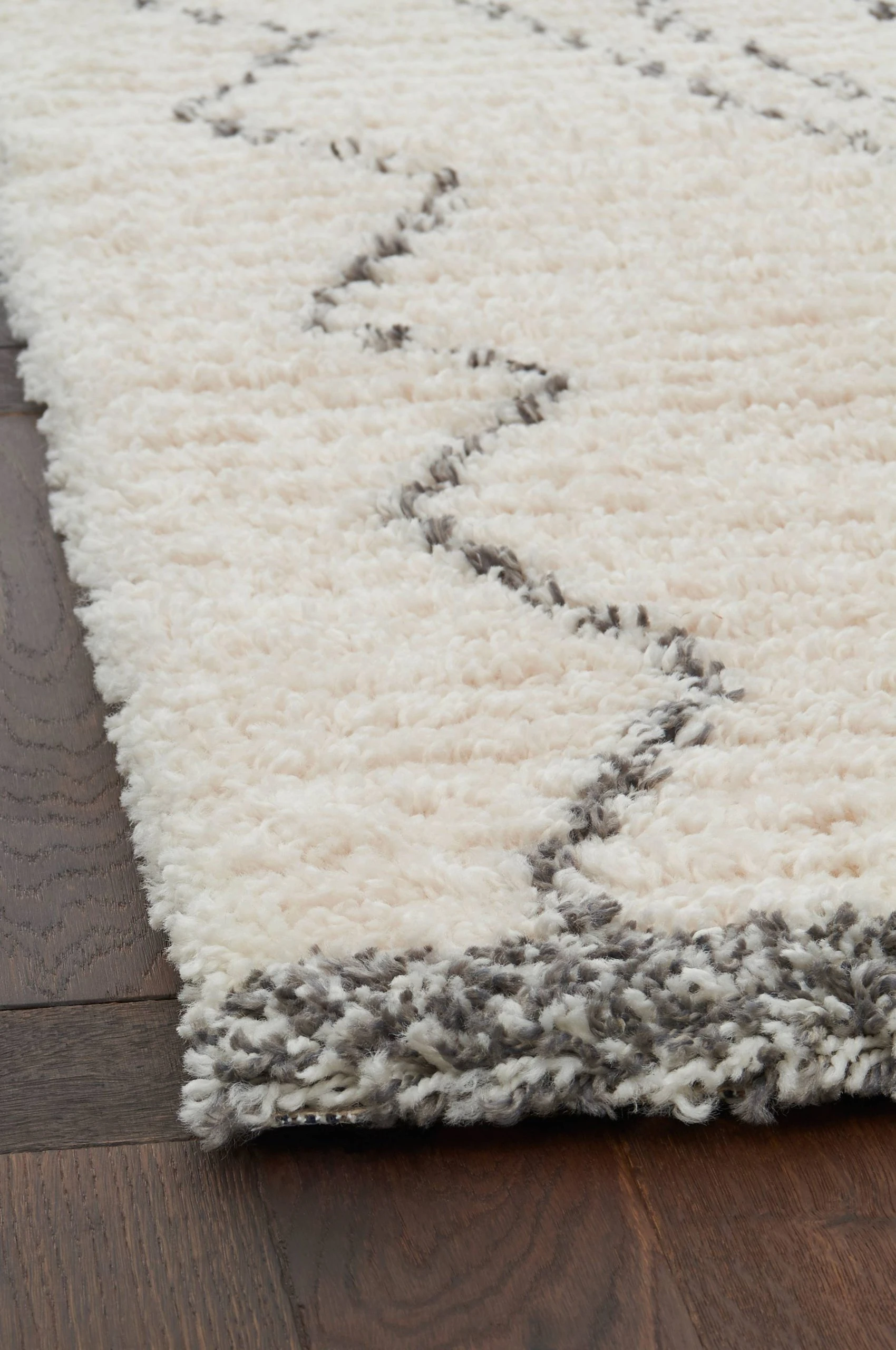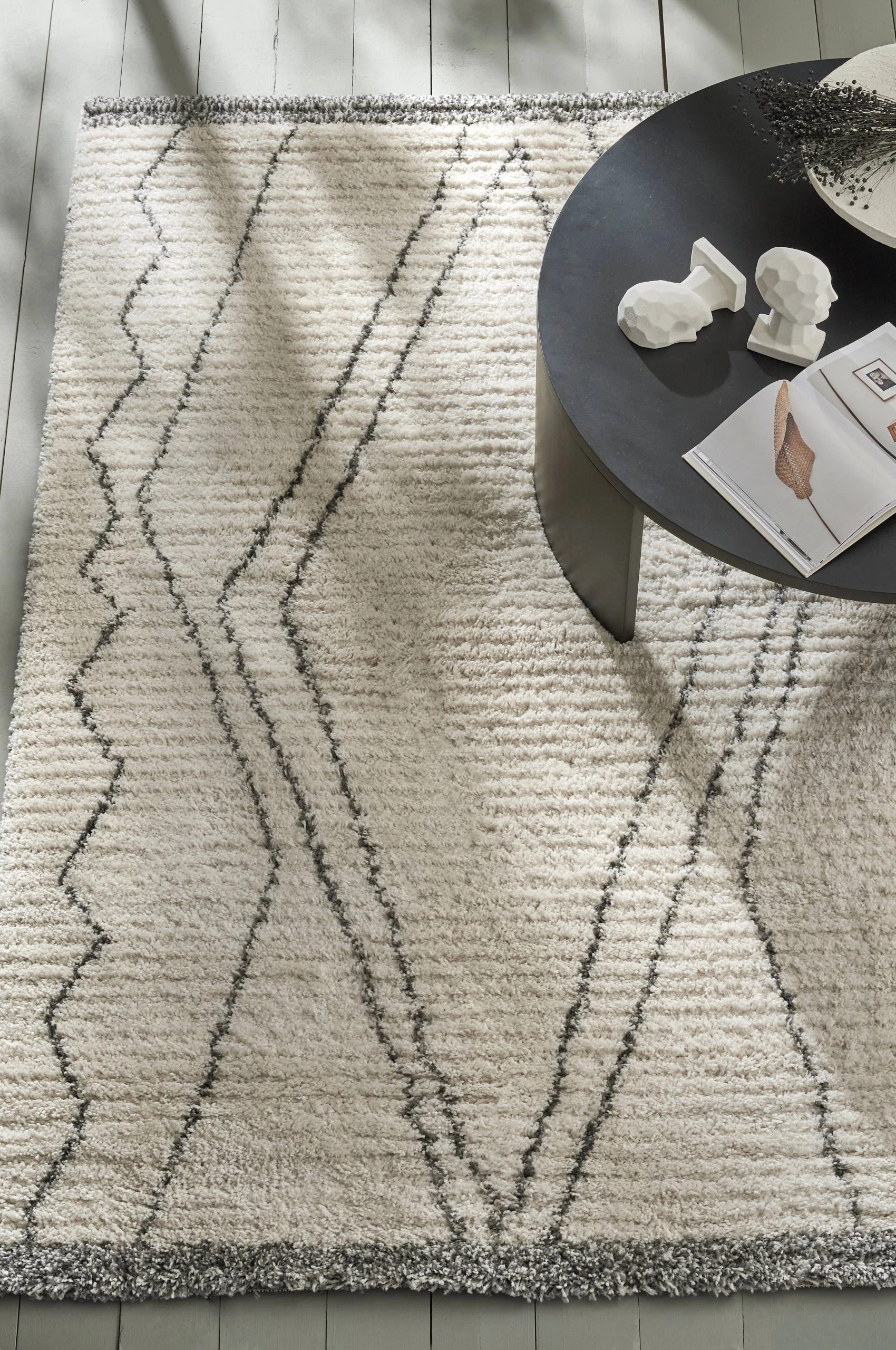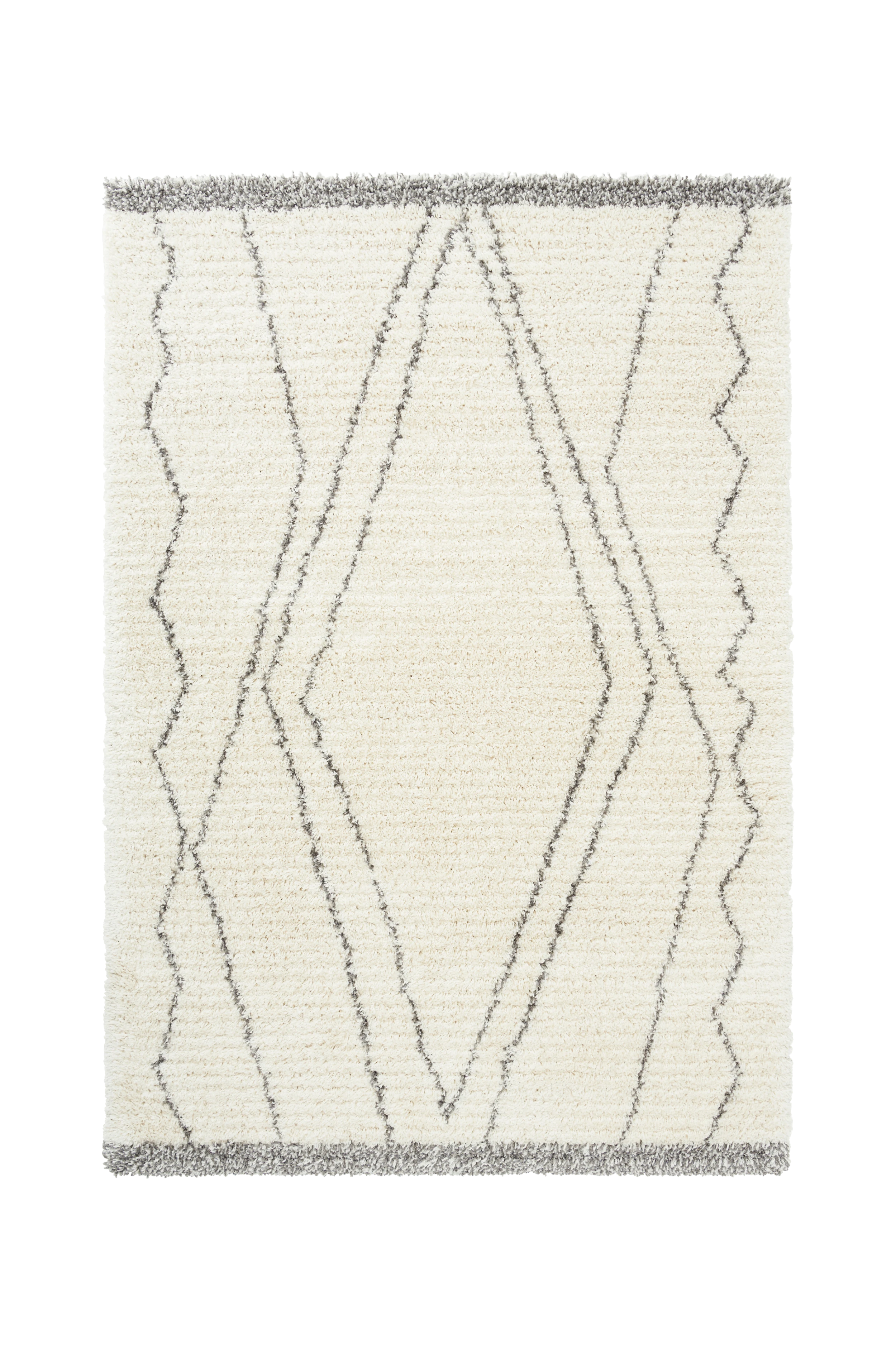 Tuftad ryamatta med tät, mjuk lugg och randig struktur. Mönster med inspiration från traditionella marockanska mattor.