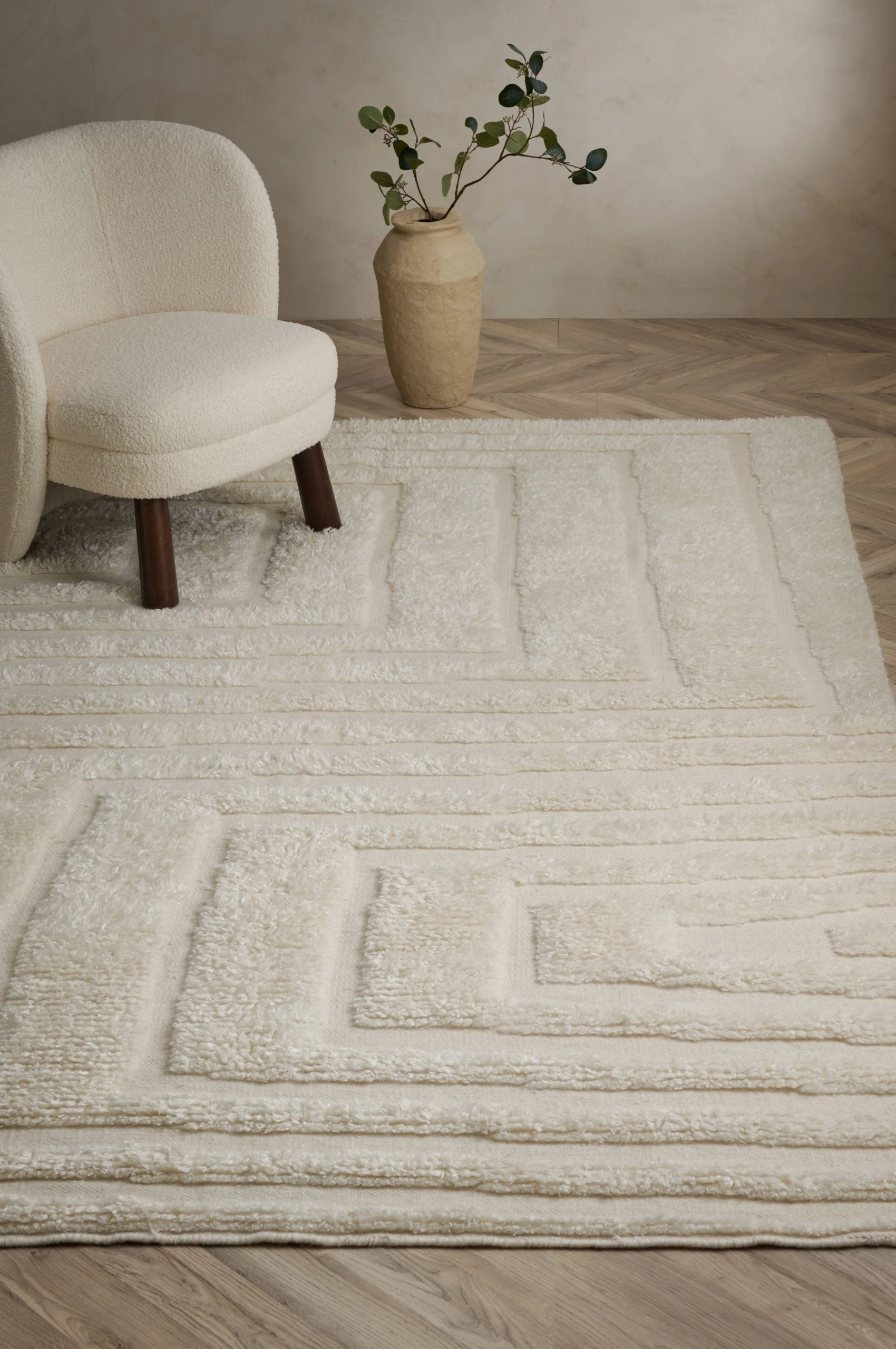 Handvävd matta i ull med viskosmix i luggen som ger mattan en fin lyster. Mattans tjocklek 1,5 cm.