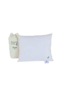 Olivia är med sitt mjuka kuddvar och finaste anddun kramvänlig och anpassad för dig oavsett hur högt vågorna går. 60% Europeiskt vitt anddun/40% småfjäder. Bärighet 550 (8) Mjukt, tätt tyg i finaste bomullscambric/twill. Färg: Vitrandig ovansida/Vit undersida. Passpoal i vass grön, broderi i vitt. 500g gram