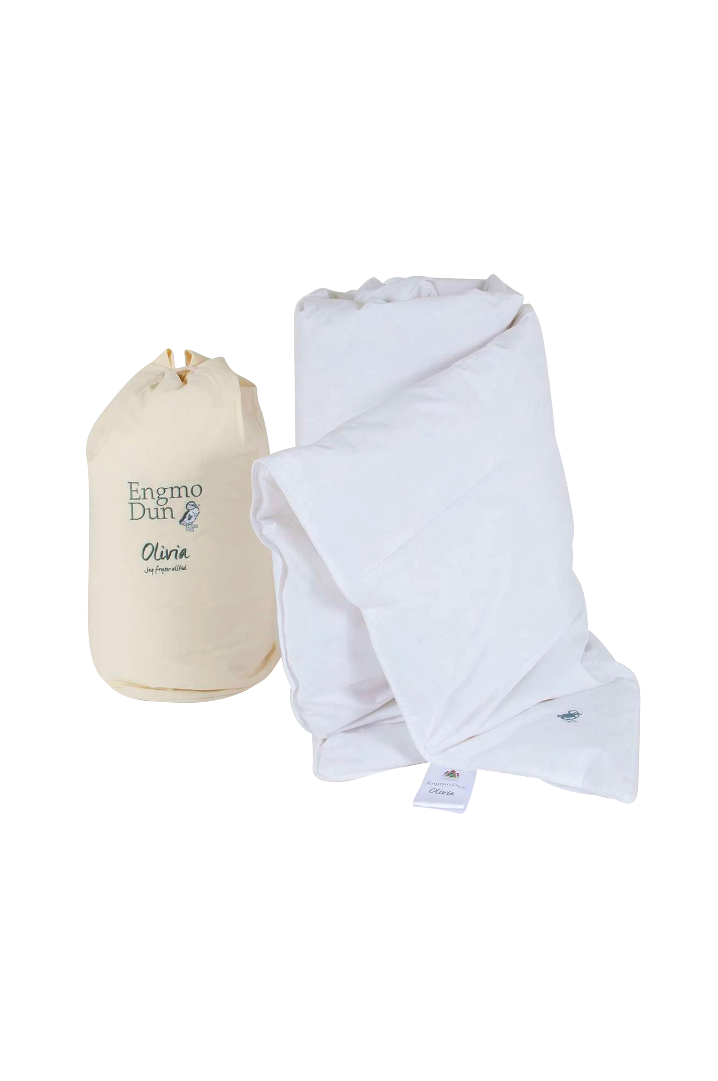 Olivia är stoppad med finaste anddun, och passar för dig som fryser ibland, eller fryser alltid. 60% Europeiskt vitt anddun. Bärighet 550 (8) Mjukt, tätt tyg i finaste bomullscambric/twill. Färg: Vitrandig ovansida/Vit undersida. Passpoal i vass grön, broderi i vitt. 700g gram