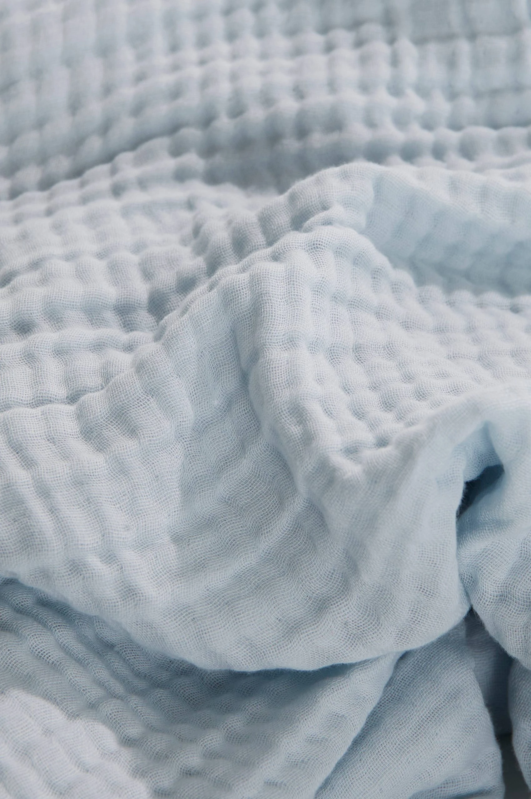 Mjuk och skön pläd i behaglig bomull. Den speciella kvaliteten är lätt krinklad i fyra tunna lager som ger en mjuk och skön känsla. Pläden har en kort, rå frans på två sidor. Pläden är härlig året runt, lagom varm, dekorativ i soffan och snygg på sängkanten. Dessutom är det en underbar sommarpläd när du sitter ute de ljumma sommarkvällarna.