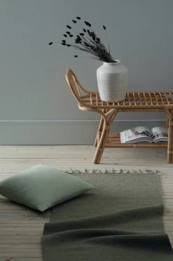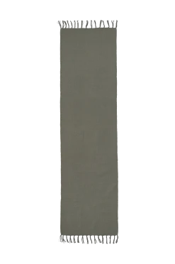 SlÀtvÀvd bomullsmatta med fÀrgade fransar. Höjd 0,5 cm.