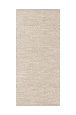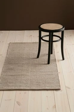 SlÀtvÀvd bomullsmatta i melangefÀrgat garn med enfÀrgade bÄrder pÄ kortsidorna. Höjd 0,5 cm.