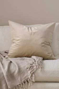 Kuddfodral av sammet med fin lyster. Av Ätervunnen polyester. Dragkedja i botten.