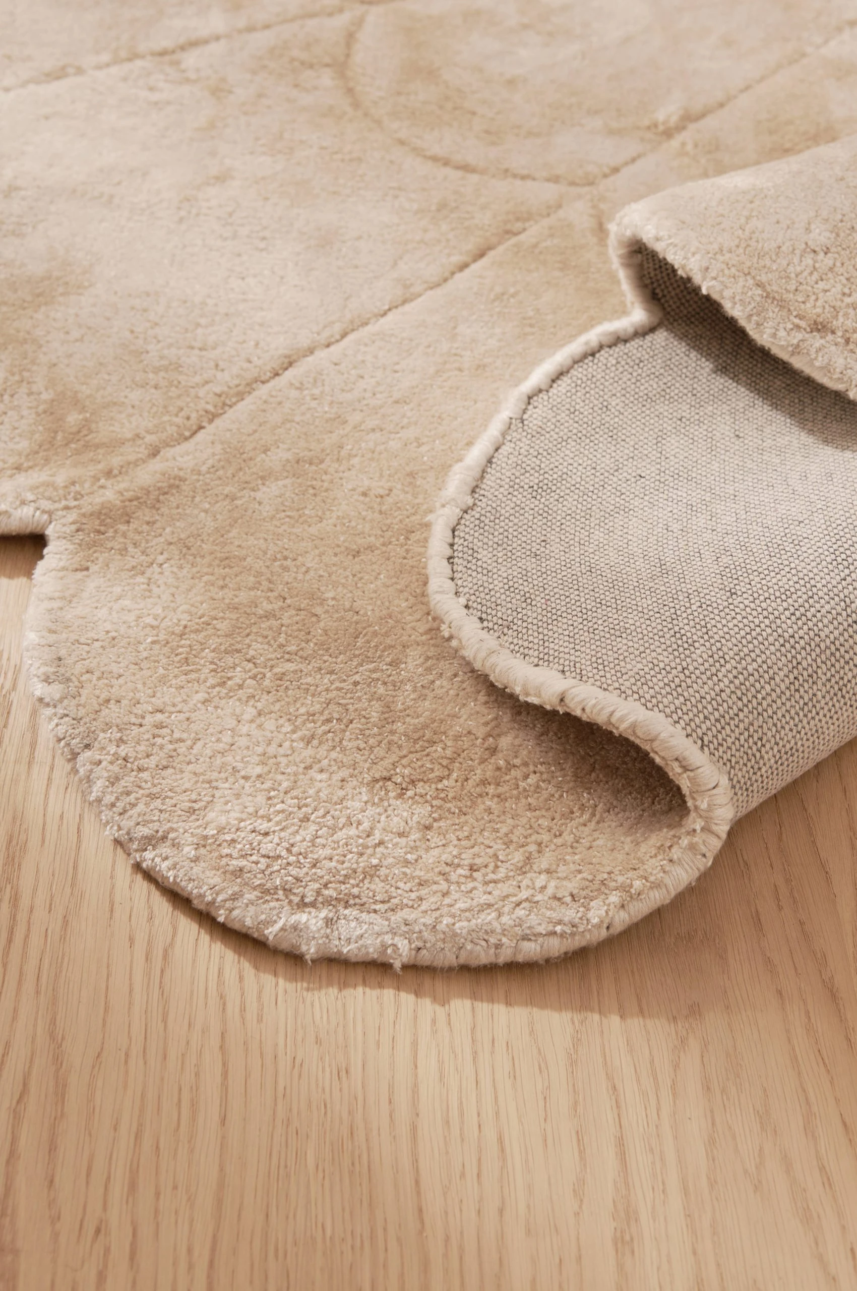 Handtuftad matta i viskos med reliefmönster. Höjd 1 cm.